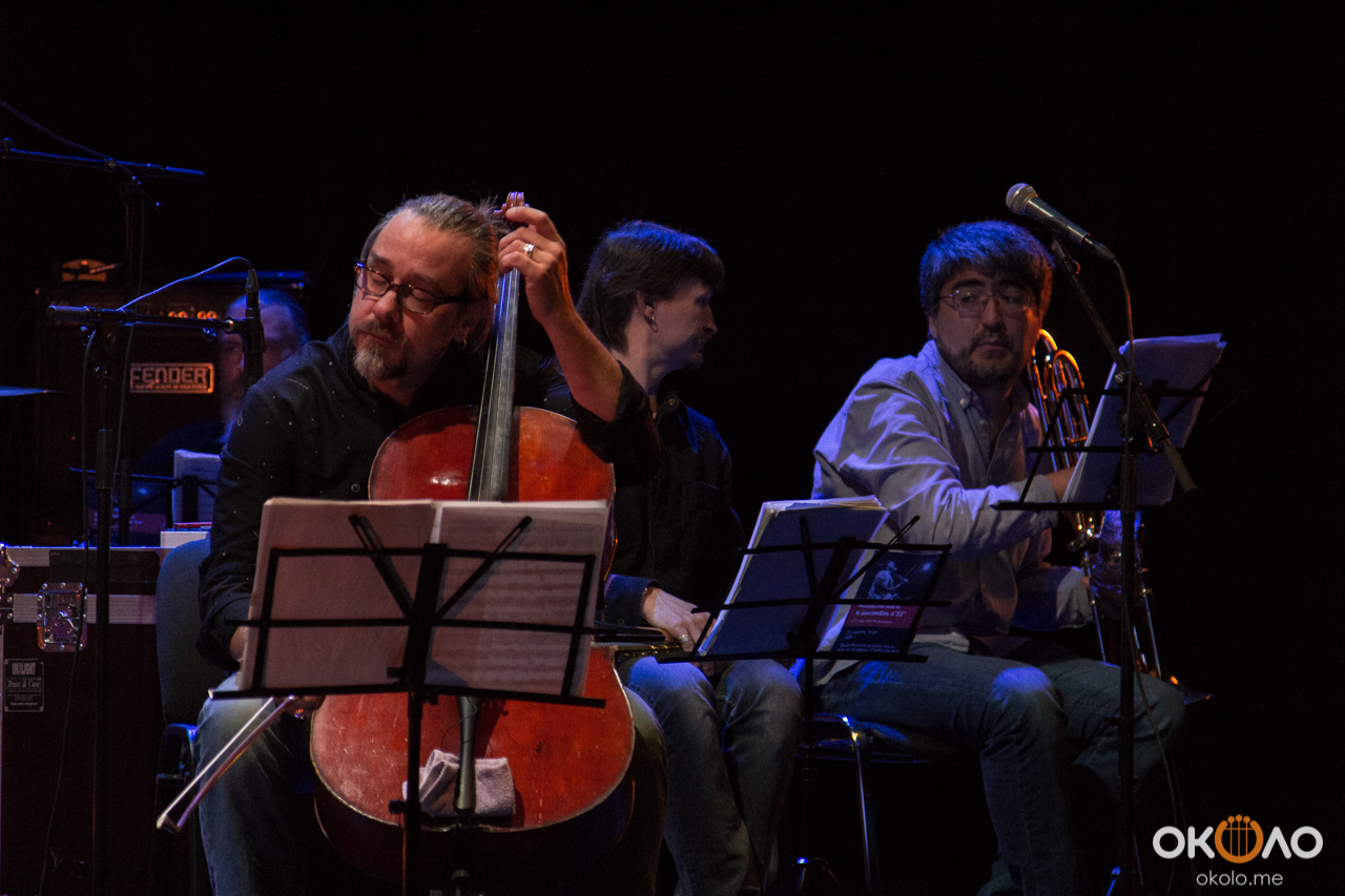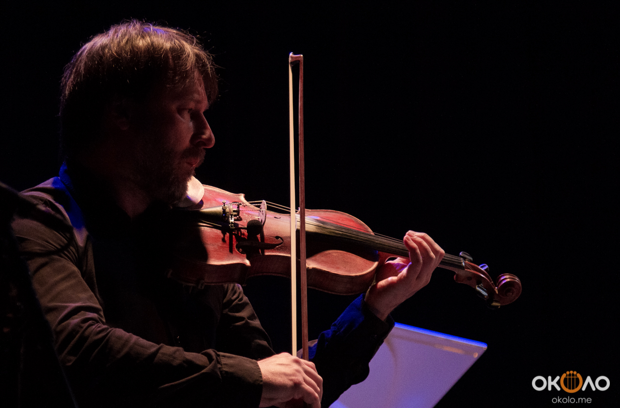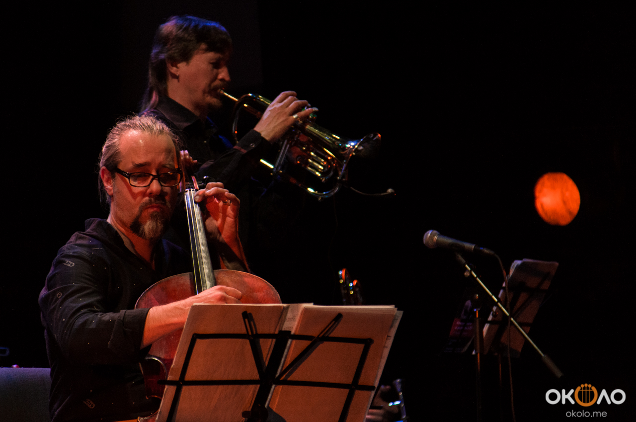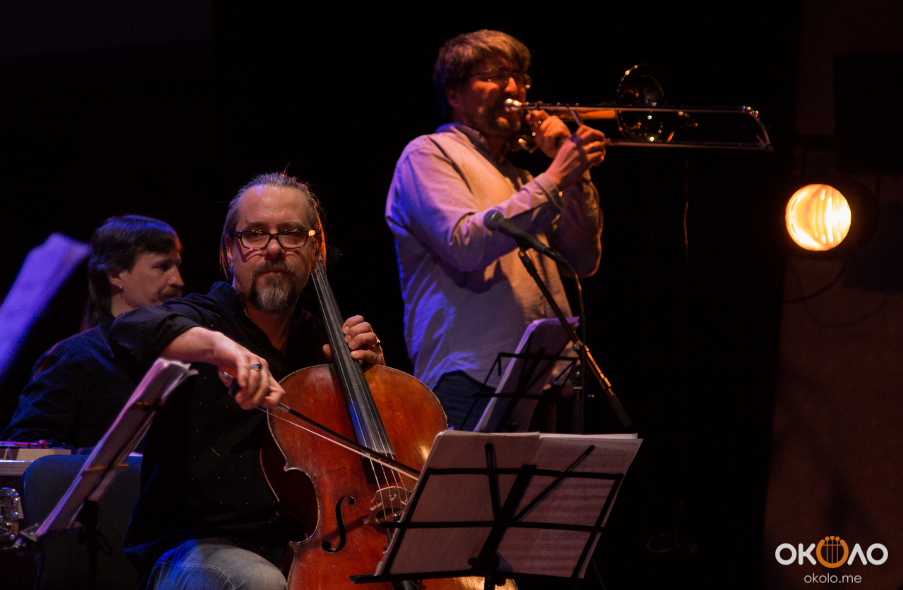 Концерт состоялся в рамках уикенда современных российских композиторов на Эрарта Сцене. Поднявшись на сцену, Алексей Айги признался, что музыканты сами не ожидали, что на сцене их окажется так много! Привычный состав коллектива: Алексей Айги — скрипка, Денис Калинский — виолончель, Андрей Гончаров — труба, Эркин Юсупов — тромбон, Аркадий Марто — фортепиано, Сергей Никольский — бас, Владимир Жарко — ударные, дополнили еще двое скрипачей и арфистка!