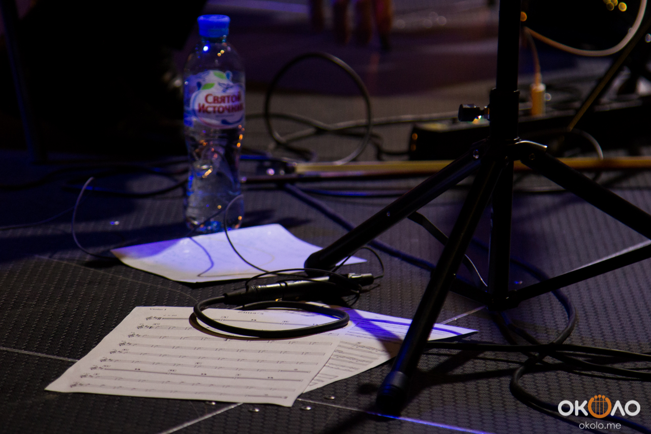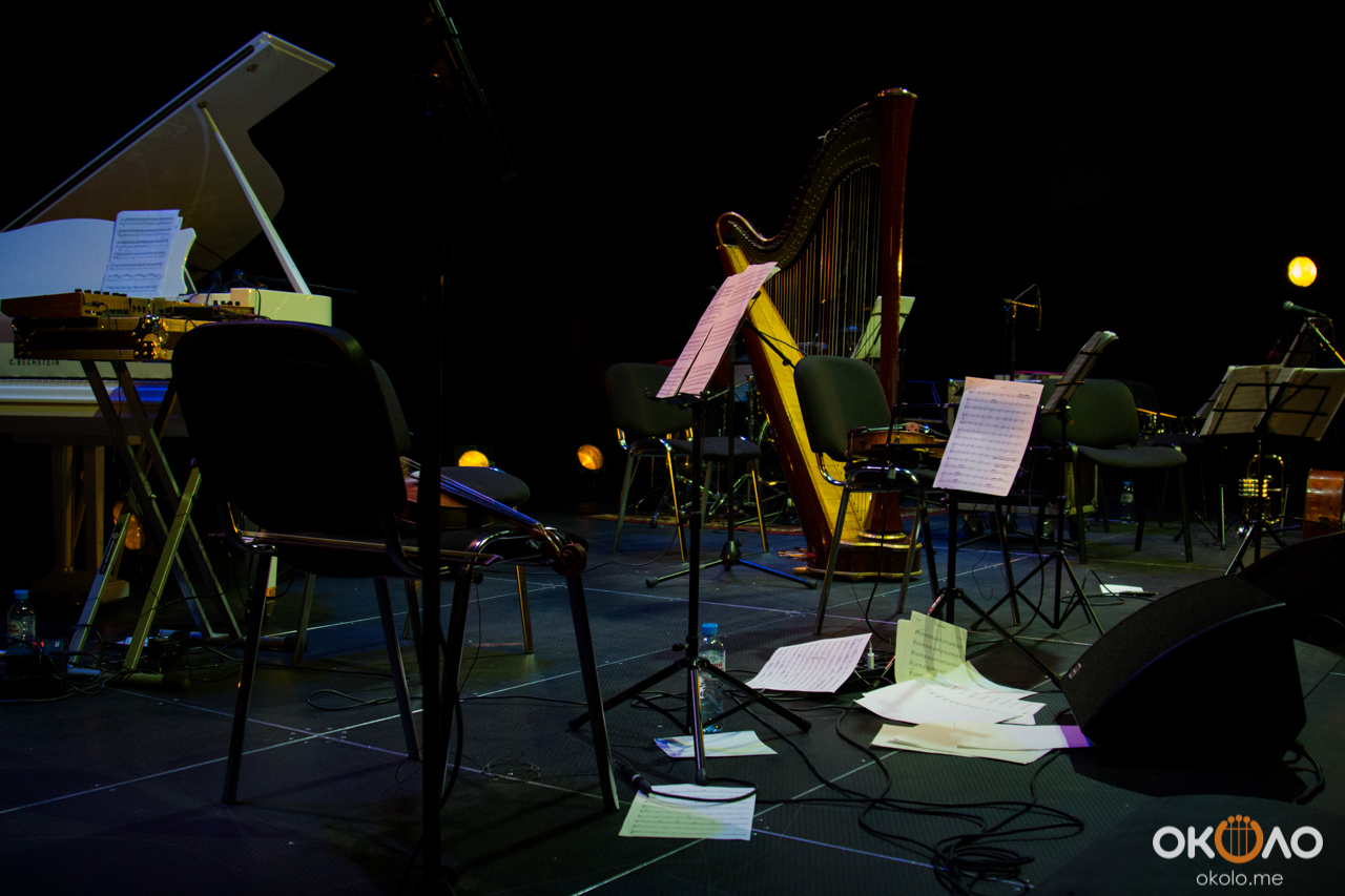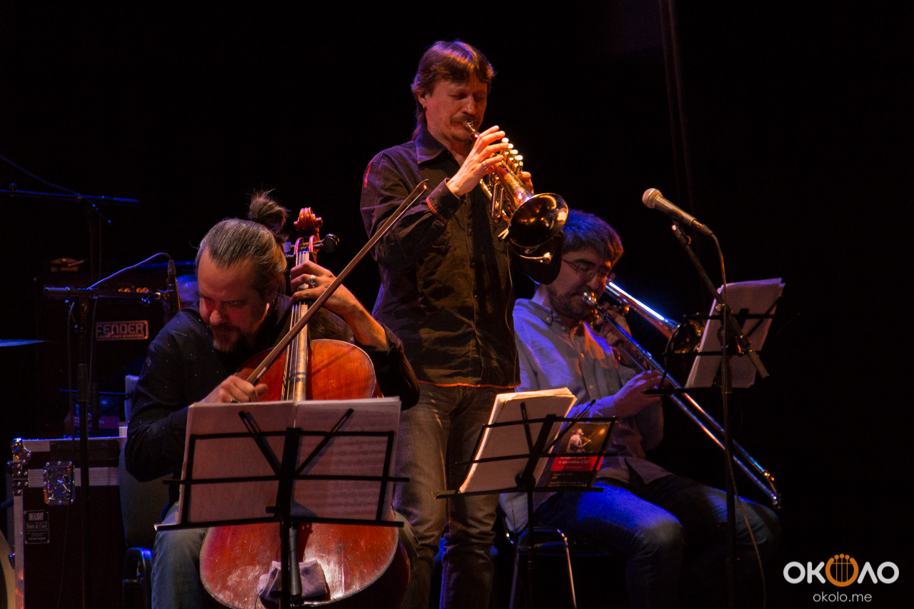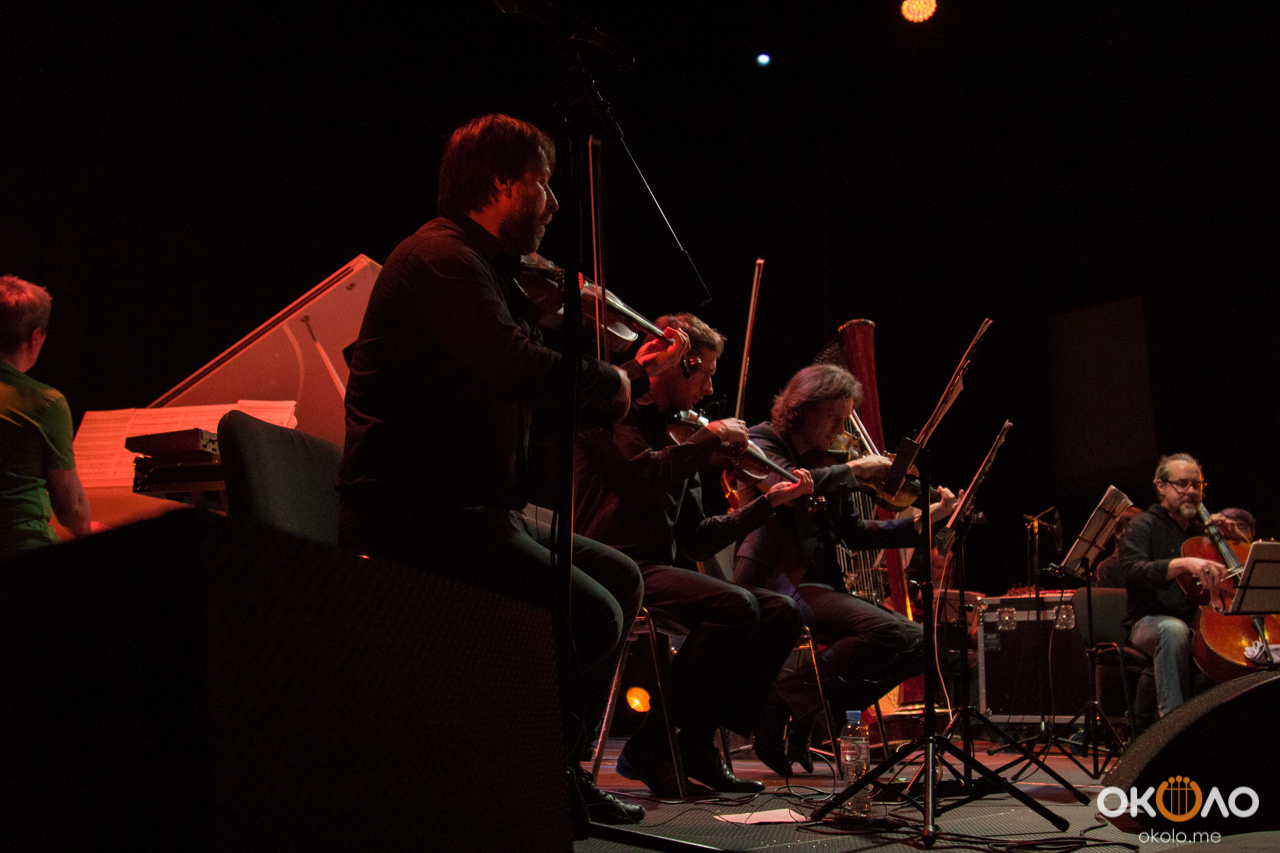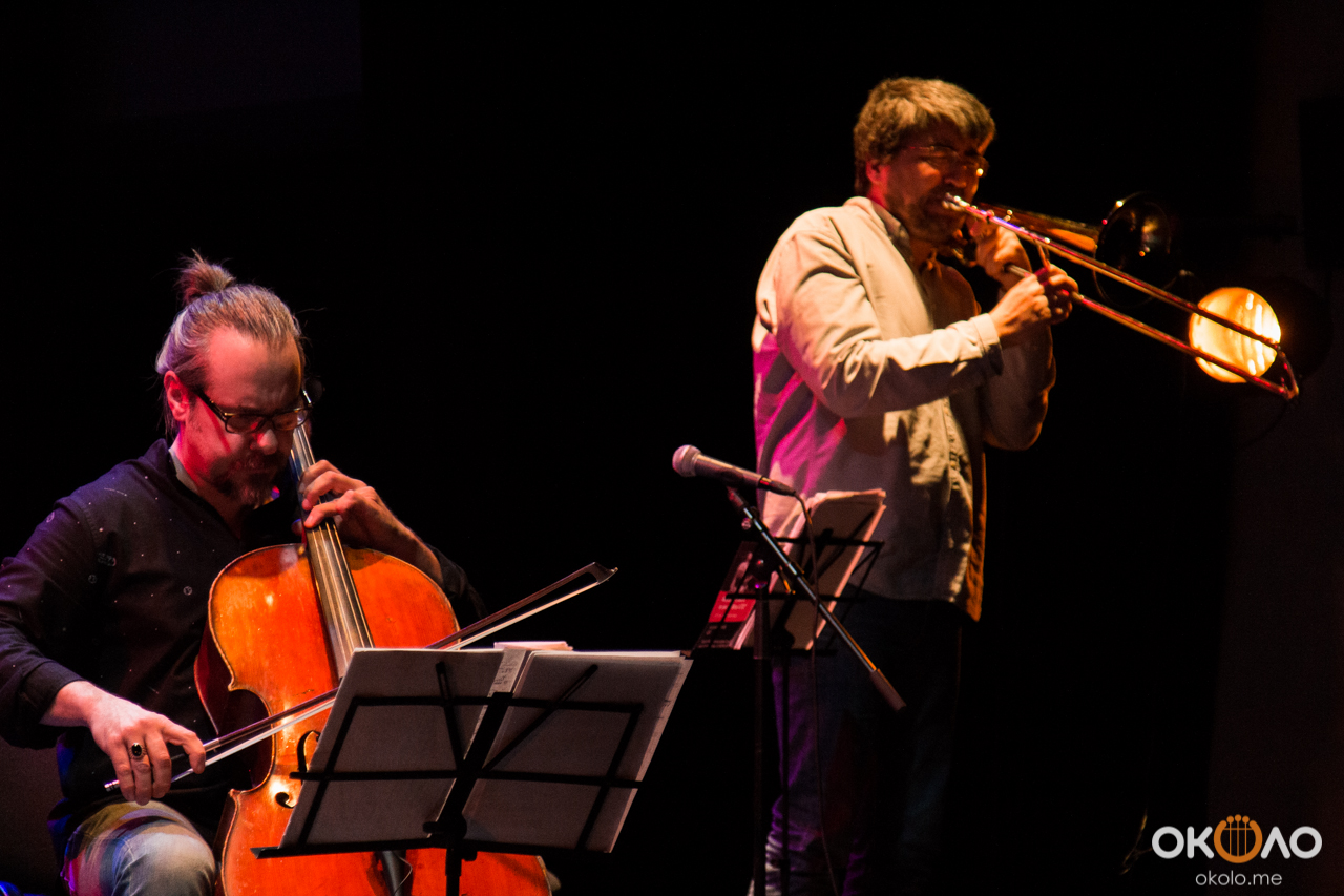 Концерт состоялся в рамках уикенда современных российских композиторов на Эрарта Сцене. Поднявшись на сцену, Алексей Айги признался, что музыканты сами не ожидали, что на сцене их окажется так много! Привычный состав коллектива: Алексей Айги — скрипка, Денис Калинский — виолончель, Андрей Гончаров — труба, Эркин Юсупов — тромбон, Аркадий Марто — фортепиано, Сергей Никольский — бас, Владимир Жарко — ударные, дополнили еще двое скрипачей и арфистка!