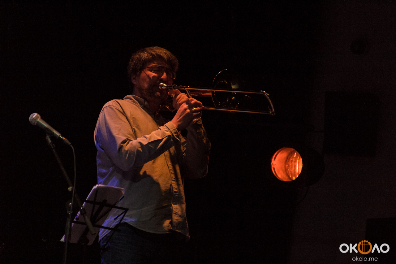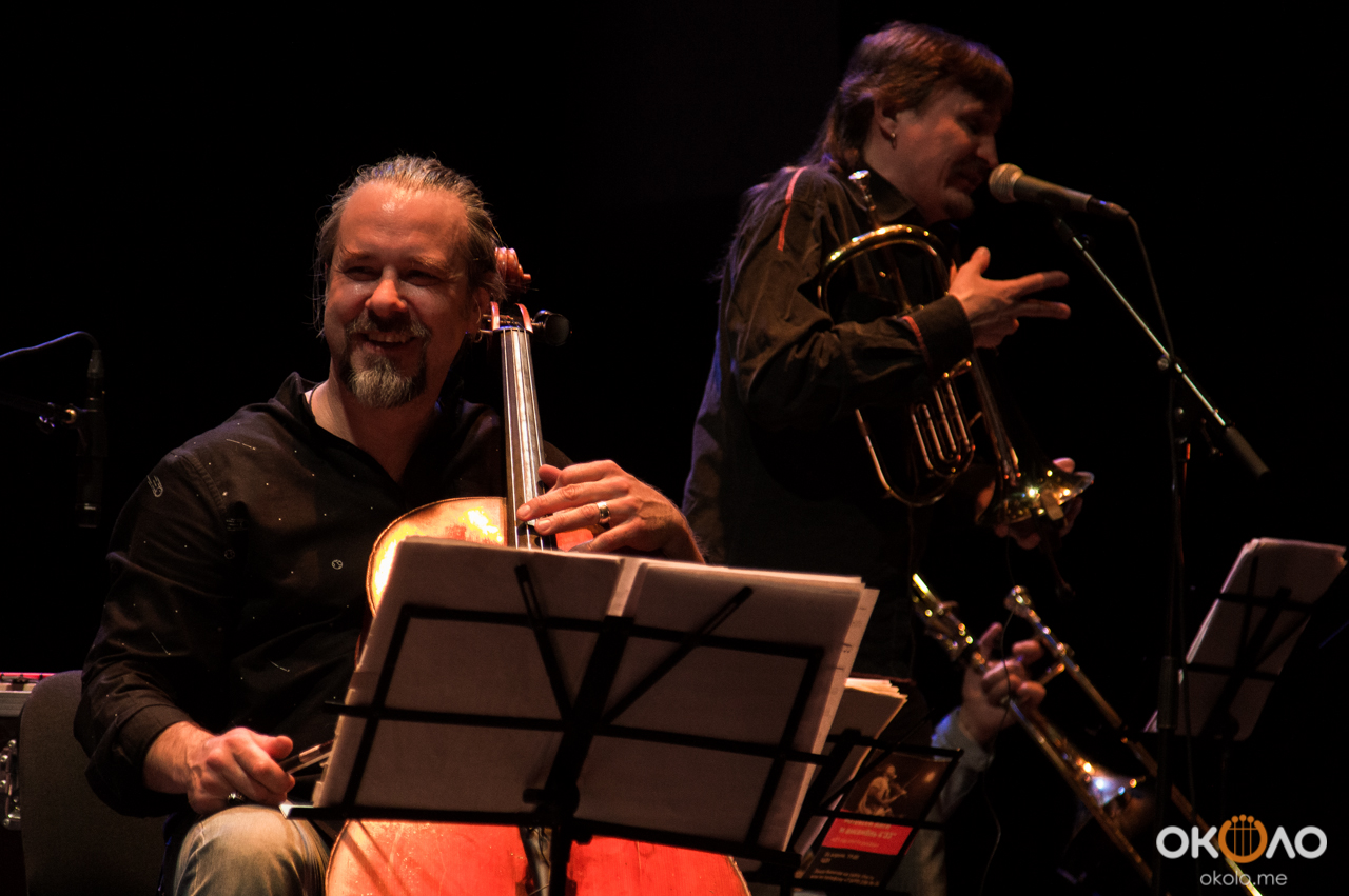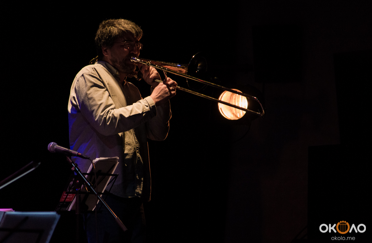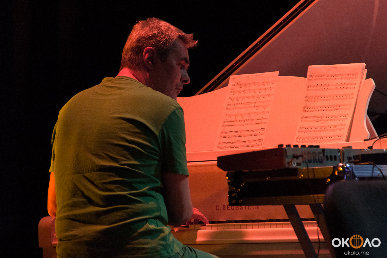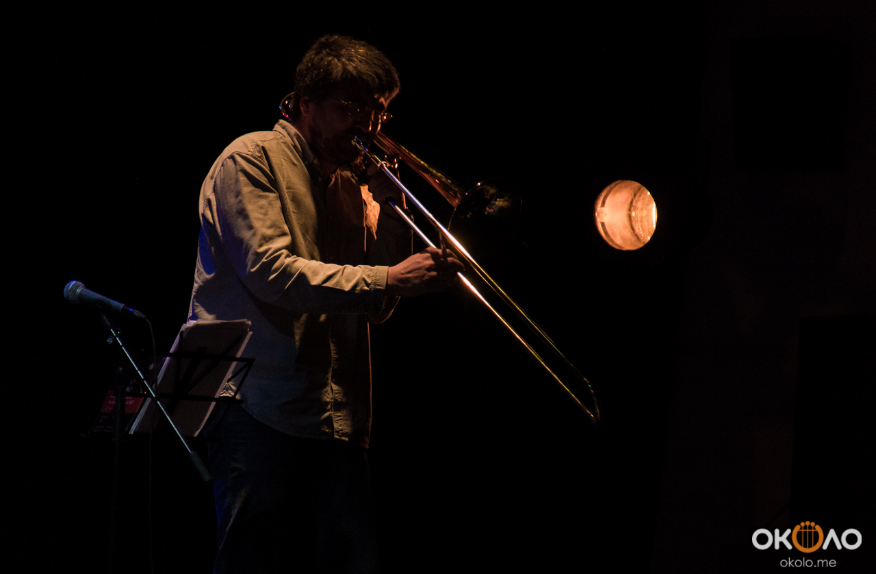 Концерт состоялся в рамках уикенда современных российских композиторов на Эрарта Сцене. Поднявшись на сцену, Алексей Айги признался, что музыканты сами не ожидали, что на сцене их окажется так много! Привычный состав коллектива: Алексей Айги — скрипка, Денис Калинский — виолончель, Андрей Гончаров — труба, Эркин Юсупов — тромбон, Аркадий Марто — фортепиано, Сергей Никольский — бас, Владимир Жарко — ударные, дополнили еще двое скрипачей и арфистка!