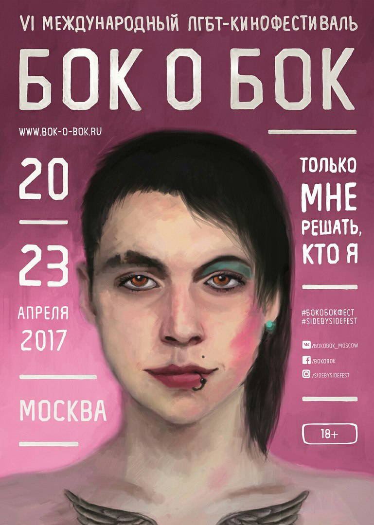 С 20 по 23 апреля москвичей ждет насыщенная программа «Бобика», тема которой – идентичность. Девиз «Бок о Бока» 2017 – «Только мне решать, кто я!» На шестом московском кинофестивале будут показаны документальные, игровые и короткометражные картины, посвященные различным вопросам ЛГБТ-сообщества. После каждого фильма зрителей ждут дискуссии, встречи с актерами, режиссерами и экспертами разных стран.