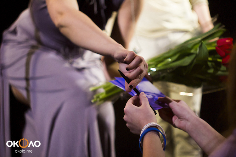 «Нам самим ужасно нравится, честно говоря. Мы его приготовили прошлой осенью, когда собирались праздновать мой — не побоюсь этого слова — юбилей…», — сказала она, и едва замолкла, как раздались аплодисменты.