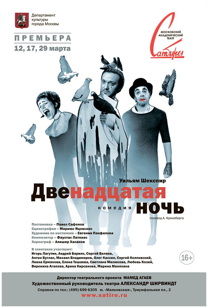 «Двенадцатая ночь». Известная комедия Уильяма Шекспира. Многочисленные постановки. Экранные интерпретации. И непреодолимое желание зрителей еще и еще раз встретиться с давно полюбившимися героями. Как же удивить публику? Как показать всем уже знакомую историю по-новому? Ответы на эти вопросы дал режиссер Павел Сафонов в одноименной пьесе на сцене театра «Сатира».