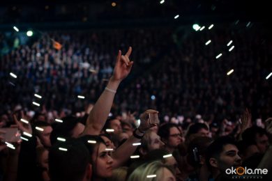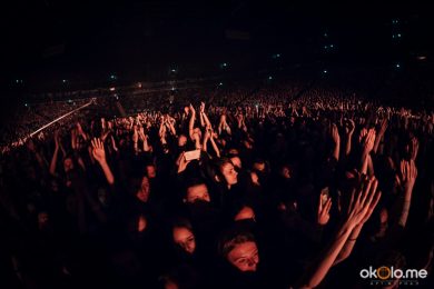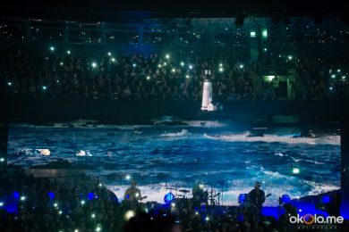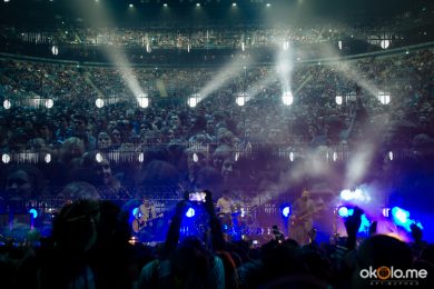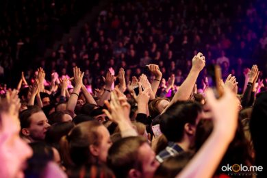 «Питерским такое не понять, только он понял», — произносит девушка рядом со мной, утирая влажные глаза. «Путь на восток» пока еще не подхватывают хором, после громких хитов зал притих, прислушиваясь к новой песне. Зато «Феллини» Ледовый поет почти без помощи Васильева, в унисон. Еще больший ажиотаж вызывает «Танцуй!» из предыдущего альбома «Резонанс», парочки начинают активно обниматься, видимо, строчка «еще глоток и мы горим» — стала эпилогом не к одному роману.