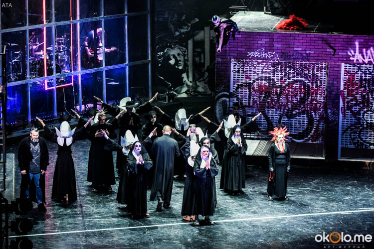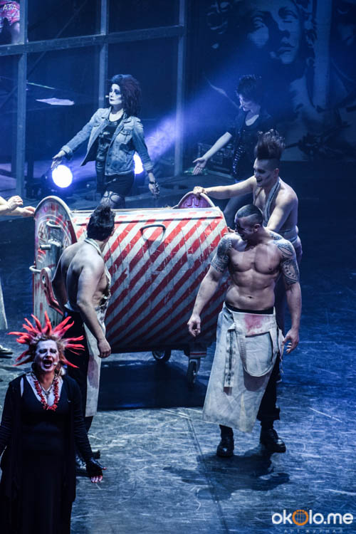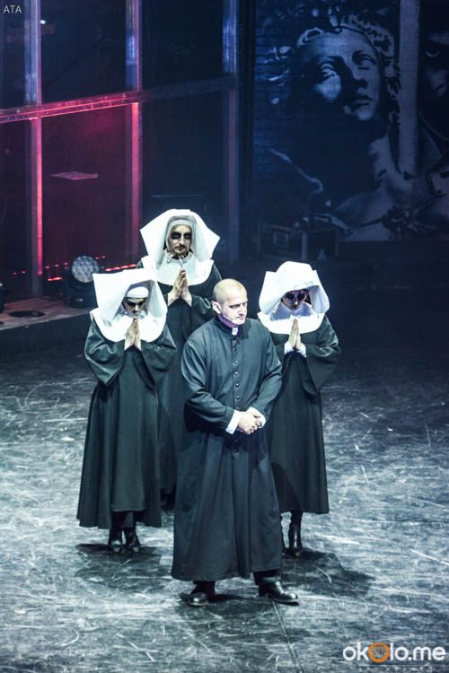 «TODD» — это уникальный микс из театра, концерта, хореографии и стрит-арта. Главная ценность рок-мюзикла — музыка исполняется вживую самой группой, которая сидит за стеклянными стенами. На сцене смонтирован большой крест, загорающийся в самые кровавые моменты.