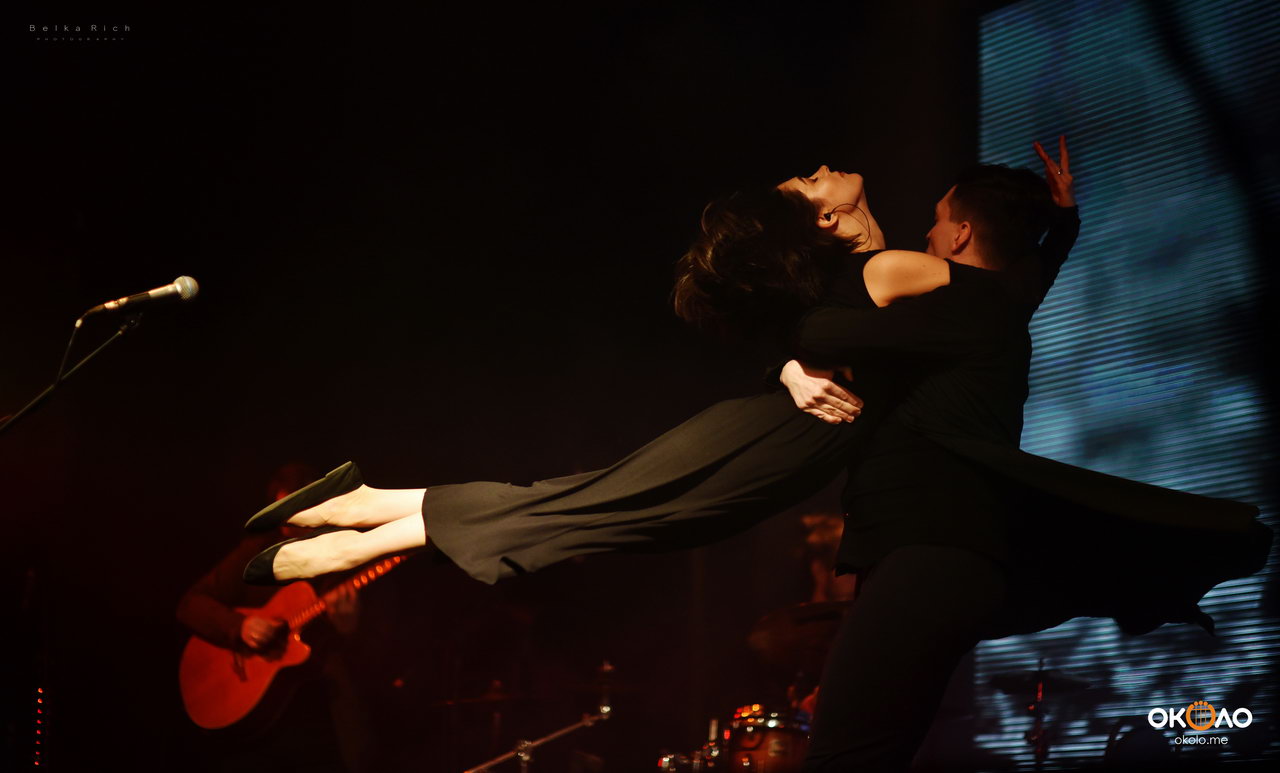 Весь концерт был продуман до мелочей. Прожекторы транслировали происходящее на сцене на огромный экран, дополняя движение красочными и стильными графическими элементами. Кроме потрясающей графики Женя подготовила волшебные танцевальные номера с танцором театра балета Бориса Эйфмана, Антоном Лабунскасом. Наблюдая сложные хореографические постановки, я убедилась, что Женя Любич держит планку словно балерина!