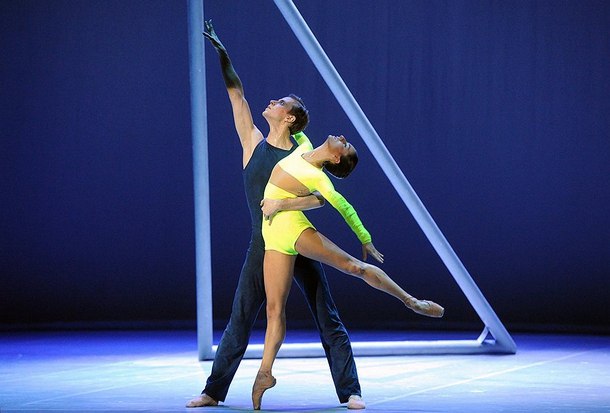 На сцене культурного центра ЗИЛ сошлись балет и музыка в стиле техно. Девять танцоров и один огромный металлический треугольник на протяжении часа завораживали зрителей.