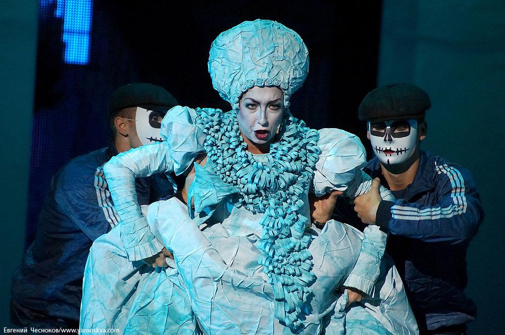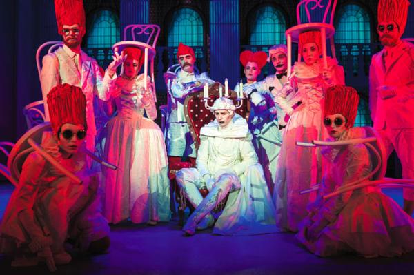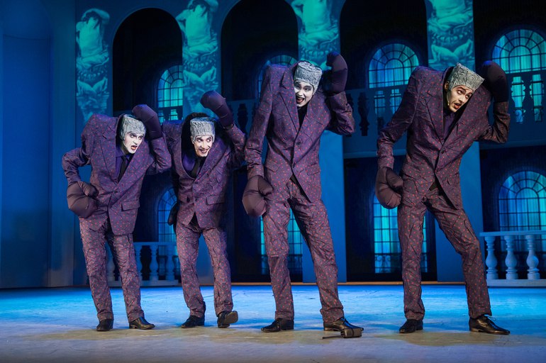 Вообще, в спектакле достаточно много ироничных моментов. Например, перед началом бала церемониймейстер (Иван Латушко) говорит, что в моде нынче стулья, а в прошлом сезоне была – сметана. Не намек ли это на стремление некоторых молодых людей угнаться за модой? А фраза «вход с котами запрещен, ведь тут собраны сливки – сливки общества» – прямая сатира на светское общество. Да и охранники бала в спектакле выглядят так, как секьюрити в клубах.