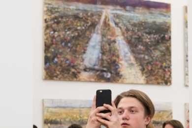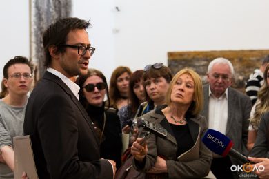 Ансельм Кифер встретился с петербуржцами 27 мая, о чем мы сообщали ранее, однако отказался от общения с прессой и участия в церемонии открытия 29 мая. По словам куратора выставки Дмитрия Озеркова, Кифер предпочитает не давать комментариев и не отвечать на вопросы о своих работ, он полагает свои художественные произведения законченным и самодостаточным высказыванием. Не смог посетить открытие и директор Эрмитажа, Михаил Пиотровский, он в это время находился в Версале и принимал участие в вернисаже выставки «Пётр Великий. Царь во Франции. 1717», посвященную 300-летнему юбилею визита российского монарха во Францию, который посетили Президент Российской Федерации Владимир Путин и Президент Франции Эммануэль Макрон. Тем не менее, отсутствие самого художника и директора музея не повлияло на интерес публики к событию: когда все слова были сказаны, а красная ленточка была перерезана нетерпеливо гудящий рой заинтригованных посетителей, среди которых то и дело встречались известные деятели культуры и искусства, мгновенно заполнил Николаевский зал!