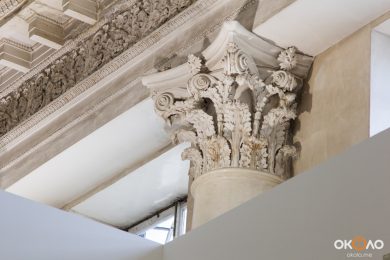 Николаевский зал полностью преображен специально для выставки: белые панели, на которых закреплены картины, почти полностью скрывают богатое убранство зала, разбитого на три секции. Чтобы вес конструкции не повредил драгоценный дворцовый паркет, была проделана сложная инженерная работа. Также специально для выставки была разработана особая система освещения: источники света установлены за белыми панелями и направлены в потолок, обеспечивая мягкий рассеянный свет.