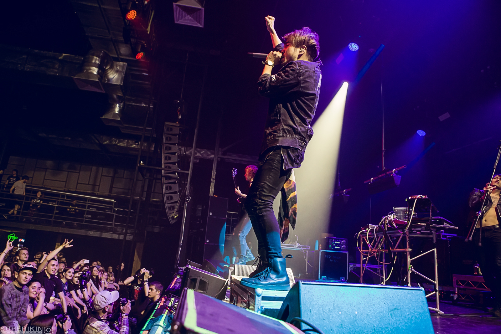 Японских гостей А2 проводил скандированием «Спасибо, спасибо» — и потянулось ожидание. Зал переводил дыхание, пока на сцене царила «группа Техники». Народ тепло принял звуковика, который, проверяя микрофоны, поприветствовал Питер. А в остальном после отжига с Crossfaith установилась томящая атмосфера. Пару раз зал зарядился и позвал Enter Shikari, и все равно чувствовалось напряжение — оно так и продержалось до выхода музыкантов ровно в девять вечера.