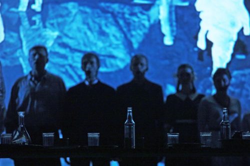 Действия произведения отделялись друг от друга военными песнями, на время которых актёры перевоплощались в военных. Каждый пел о своём: девушки о потере любимого, мужчины о любви и родине.