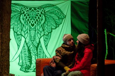 После заката лес облачался светом космических декораций, зажигались огни артистов световых представлений MAAVI, FOREST TRIBE и других театральных проектов, сияли проекторы уличных кинотеатров, и начиналась настоящая магия…