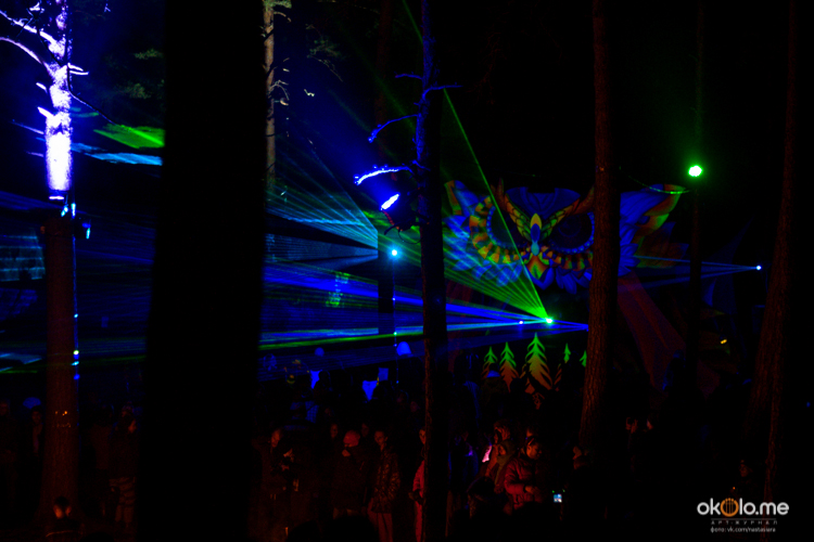 После заката лес облачался светом космических декораций, зажигались огни артистов световых представлений MAAVI, FOREST TRIBE и других театральных проектов, сияли проекторы уличных кинотеатров, и начиналась настоящая магия…
