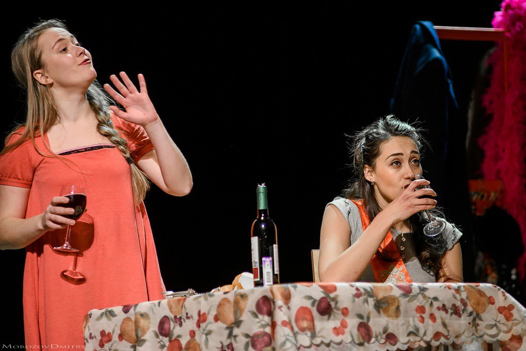 В репертуаре московского театра «Компас» есть спектакль двух замечательных актрис – «Пила вино и хохотала». Анна Быкова и Инна Егорова обнажают перед зрителями не только свои души, но и обличают многочисленные истории, взятые из всевозможных женских форумов. Создается впечатление, будто они всю жизнь подглядывали за вами, иначе как еще объяснить такое четкое попадание в десятку, когда та или иная жизненная ситуация оказывается до боли знакомой?