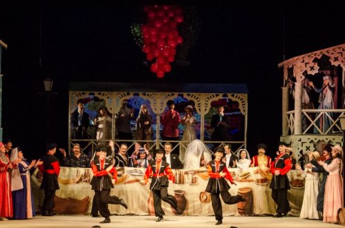 А так и произошло в «Хануме». Я взял несколько актеров из драматической труппы. Правда, все они весьма неплохо владеют вокалом. И этот синкретизм, это столкновение профессиональных «интересов» дали очень интересные и неожиданные сценические результаты. Получился замечательный баланс, все друг друга дополняли и с удовольствием вместе работали. Такой правильно неправильный аккорд возник. Я немало переделал в партитуре, появилась новая аранжировка для целого ряда номеров. Дирижер-постановщик Руслан Козовчинский – бесспорный профессионал и далеко не консерватор – с готовностью поддержал мои предложения и помог осуществить замысел спектакля, за что я ему очень благодарен. Не все шло «по канону». Иногда оркестру было трудно со мной. Музыкантам приходилось быть полноценными участниками спектакля, в том числе и играть в «массовке» в тех или иных сценах. И, конечно же, я убрал грузинский акцент – на самом деле мы ничего не знаем ни о нем, ни о диалектных различиях в речи жителей Тбилиси. Поэтому я заставлял актеров километрами смотреть грузинские фильмы, чтобы они могли впитать хотя бы мелодику грузинской речи. Даже немного учили язык: для убедительности я добавил в текст пьесы грузинские слова и фразы. Не отказал себе и в удовольствии прибегнуть к обсценной лексике, хотя и допустимой для сцены. Это были скорее такие эмоциональные выражения в грузинском бытовом языке. То есть мы полностью уходили от какого-либо изображения утрированного акцента – пародии в исполнении русского человека. По этому поводу Михаил Туманишвили рассуждал, почему русские играют грузин обязательно с акцентом, а Шекспира, к примеру, – без…