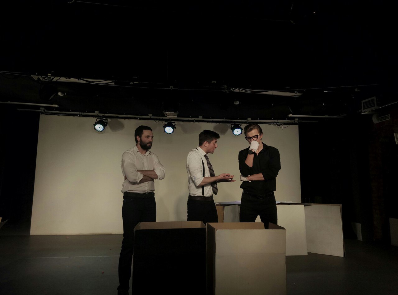 На площадке театрального лофта «Компас-центр» вновь состоялся бой этики с эстетикой. Те же реплики, те же декорации и, самое главное, тот же предмет ссоры, но на этот раз за правду боролись не три очаровательные леди, а три лучших друга.