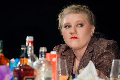 Зрители – приглашенные гости, свидетели событий на праздничном банкете. Спектакль — отражение современной свадьбы. Персонажи легко узнаваемы: скорбящие родители невесты, не желающие отдавать дочь в чужую семью; младшая сестра героини – единственная, кто радуется торжеству; подвыпивший свидетель-ловелас пытается соблазнить всех девушек на банкете. Богатая замужняя подруга невесты пришла на свадьбу с мужем покрасоваться. Чтобы не потерять лицо – строго следит и ограничивает действия супруга. Это слегка напоминает балаган, в котором каждому отведена своя комическая роль.