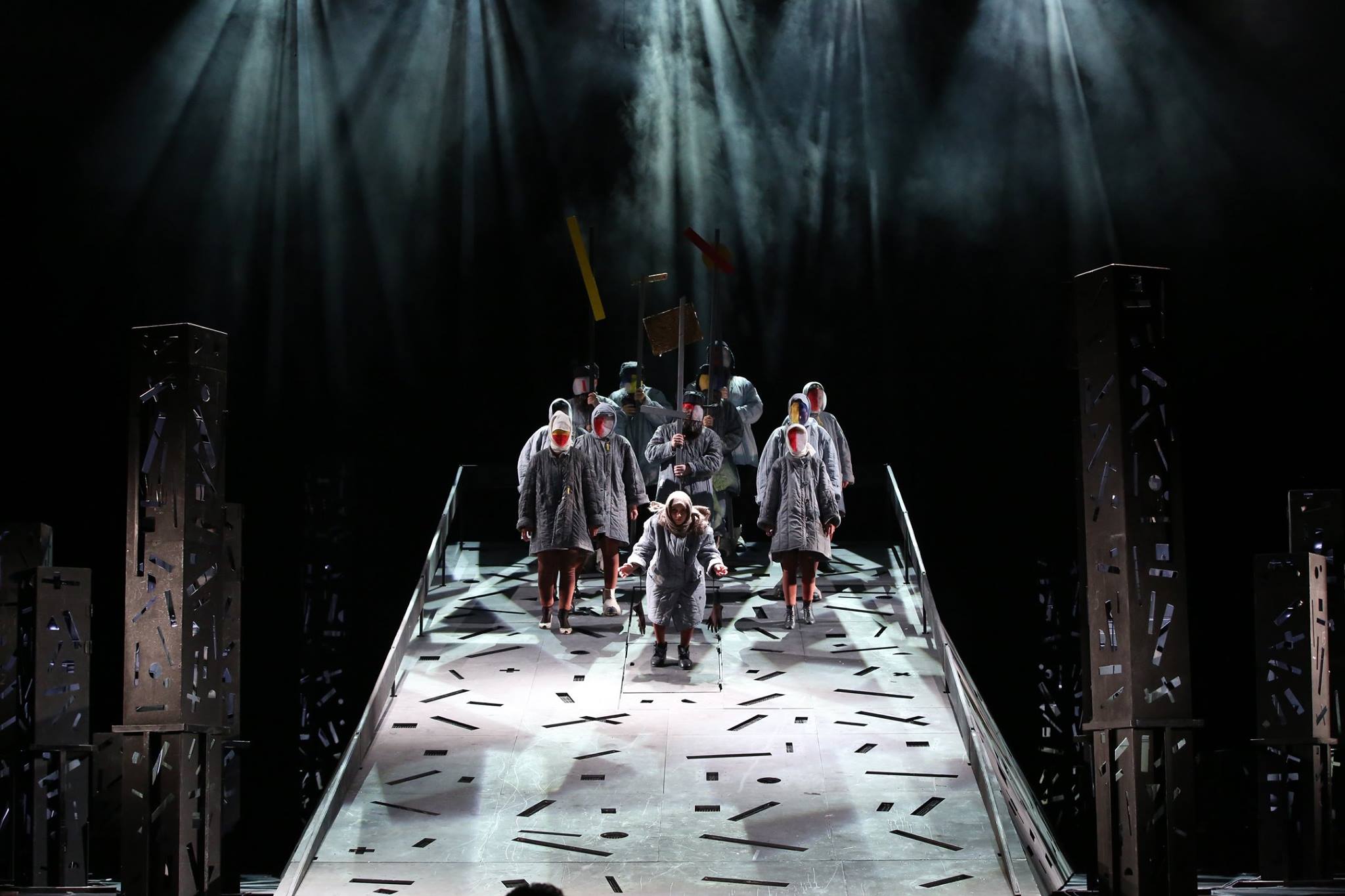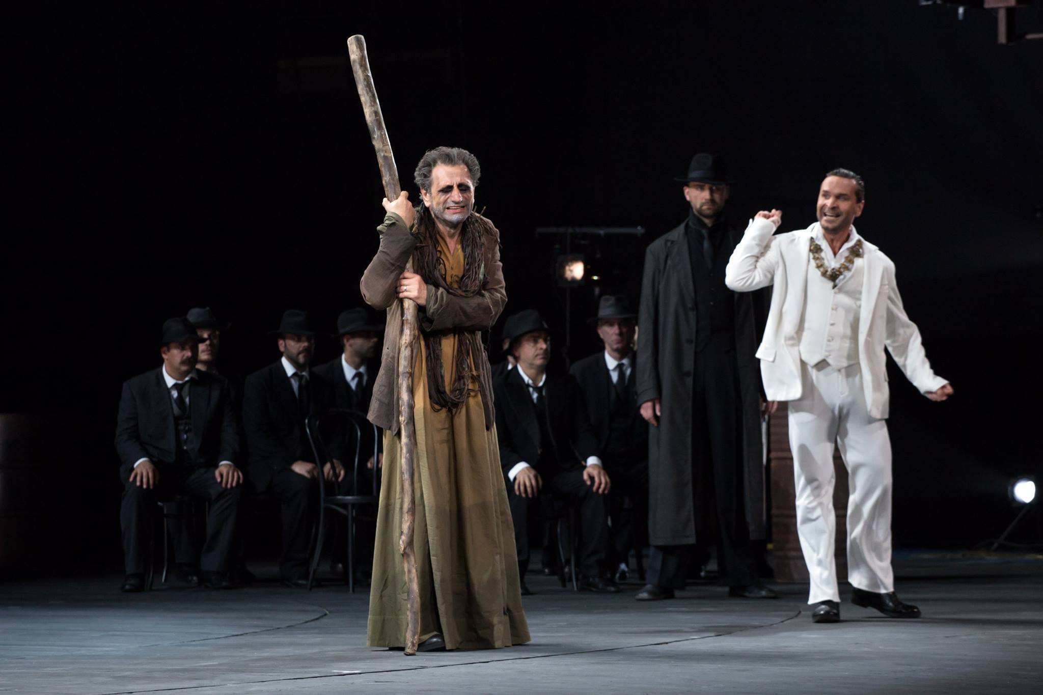 Этими экзистенциальными сомнениями наполнена и театральная программа первых дней фестиваля. И если в споре с высшими силами, природой в «Родине электричества» побеждает человек, то в постановке Театра им. Е. Вахтангова древнегреческой трагедии «Царь Эдип» (режиссёр – Римас Туминас) герой буквально раздавлен Судьбой. Прозрев, он ослепляет себя.