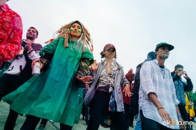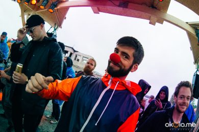 Но главным хэдлайнером фестиваля, безусловно, была стихия, которая явилась в самый разгар второго дня выступлений. По прогнозам синоптиков, дождь обещали с самого утра пятницы. Но, как это часто бывает на массовых мероприятиях, на радость участникам, что-то пошло не так. Поэтому, часов в 16-17, когда посетители только отошли от ночных сэтов, пришли в себя и начали подтягиваться к двум работающим сценам (The Beach и The Yard), ливень еще даже и не думал начинаться. Посетители постепенно разогревались кто едой, кто кофе, кто алкогольными напитками, а кто и чем посущественнее, чье название неприлично называть вслух и запрещено проносить на территорию фестиваля. Музыка проникала всё глубже, и невозможно было устоять на месте. Дороги на территории фестиваля уже были размыты ночным дождем, и танцующие походки позволяли играючи преодолевать эти препятствия.