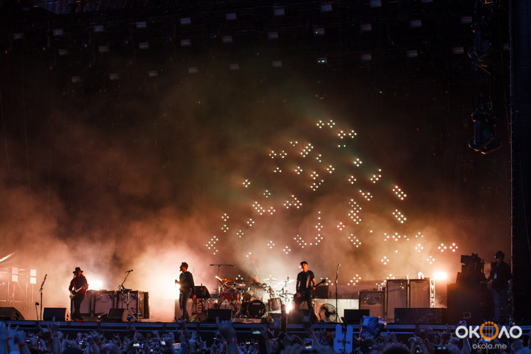«Эти молодцы, хоть написали, как называются», — хихикнули сзади меня, когда техники растягивали баннер Three Days Grace. Но если кто и не помнил названия этих постграндж-канадцев, то их песни знали лучше: по крайней мере, вступительную I Am Machine стадион заголосил, чуть ли не перекрикивая Мэтта Уолста. Тот, широко улыбаясь, ловил кайф от такой отдачи и сам генерировал тонны энергии, носясь по сцене. В его исполнении одинаково сильно звучали и записанные уже с ним песни после 2014 года, и хиты TDG прежних лет, когда вокалистом был еще Адам Гонтье.