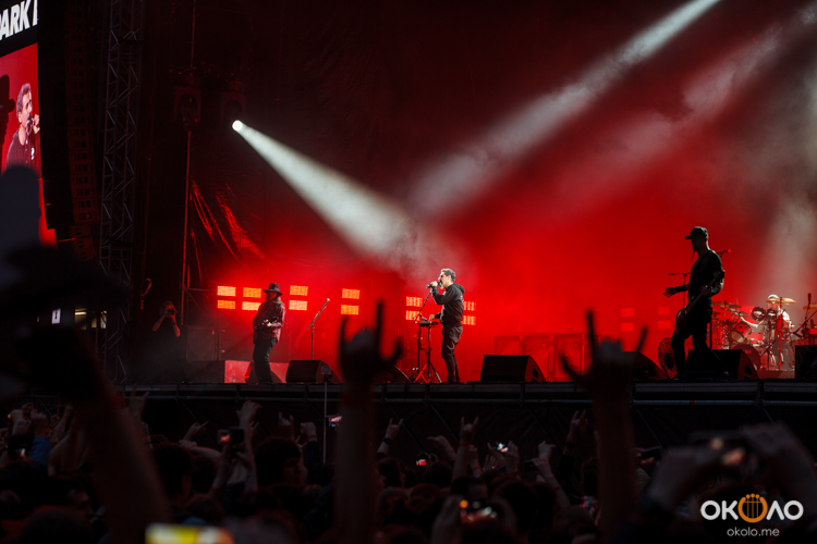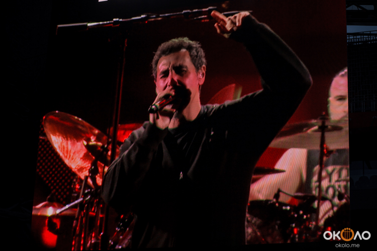 Софиты сочных, темных тонов, свет со всех стороны сцены, огромный ромбовидный экран, на котором сменяли друг друга психоделичные кадры, самовольно двигавшиеся металлические конструкции… Техническое оформление выступления SOAD было на высшем уровне. Красно-оранжевое освещение в сочетании с магическим речитативом и вокализом Танкяна и выразительной мимикой Шаво Одаджяна создавало впечатление, что стадион превратился в преисподнею, и эти «дьяволы» обнажили все человеческие грехи, какие только нашли.