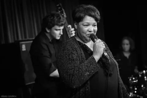 Вслед за Юлией Касьян выступала зажигательная и артистичная Элла Трафова. Заслуженная артистка России и «первая леди» в отечественном джазе спела «Летний сад» на стихи Анны Ахматовой и музыку Давида Голощекина. И пусть бытует мнение, что джаз по-русски не звучит, здесь все звучало отлично. Первое отделение завершилось энергичным и динамичным исполнением классической джазовой композиции «Sweet Georgia Brown».
