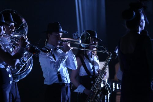 Удачное решение режиссера – живой джазовый оркестр и вольная трактовка хитов 30-х годов, переведенных на русский язык Борисом Бирманом, придает действу ритм. Время действия, которое можно предположить вначале, ориентируясь на описание старого европейского городка, легко становится похожим на наши дни, когда официантка берет в руки планшет и делает селфи, а носороги в масках в финальной сцене отбивают чечетку на фоне небоскребов.