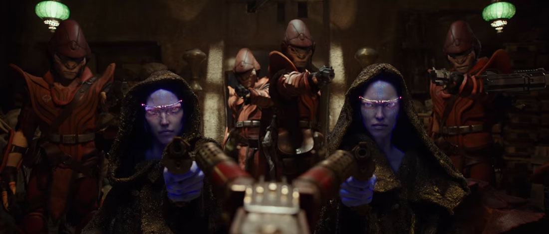 Знакомству с героями отводится куда меньше времени, чем описанию станции «Альфа», ее истории и демонстрации инопланетных существ, населяющих ее. Мы узнаем, что наши герои давно работают в команде. Валериан влюблен в Лорелин, но она не хочет быть с ним, поскольку считает его безответственным бабником и не верит, что добившись ее, он захочет строить серьезные отношения. Это ведь именно то, что вы ожидаете увидеть в фантастическом фильме, правда?