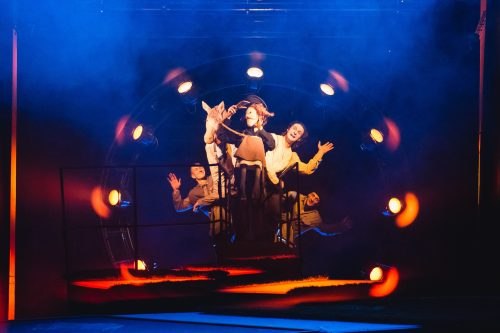 В спектакле Натальи Слащевой легкая грусть соседствует с безудержным весельем. Блюзовые мотивы сменяются рок-н- роллом, а светомузыка есть не только на сцене, но и на потолке над зрительным залом.