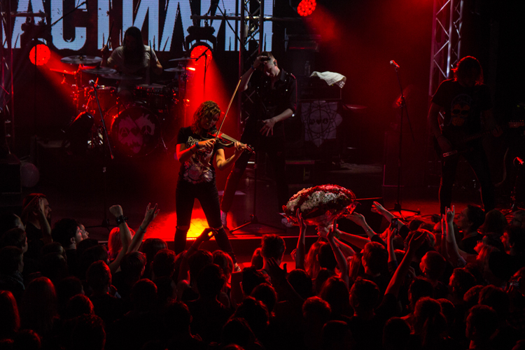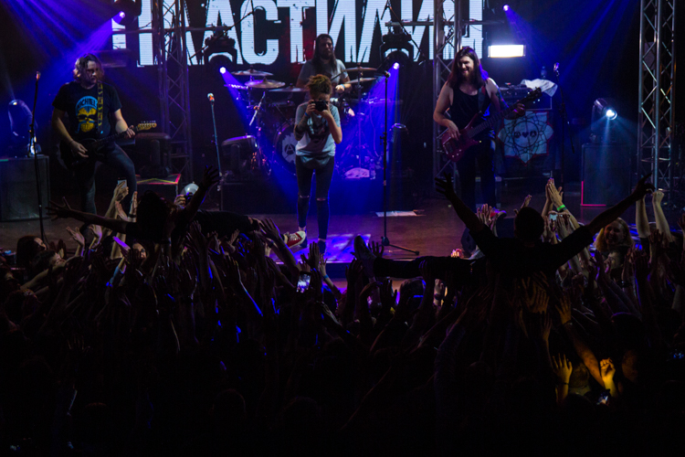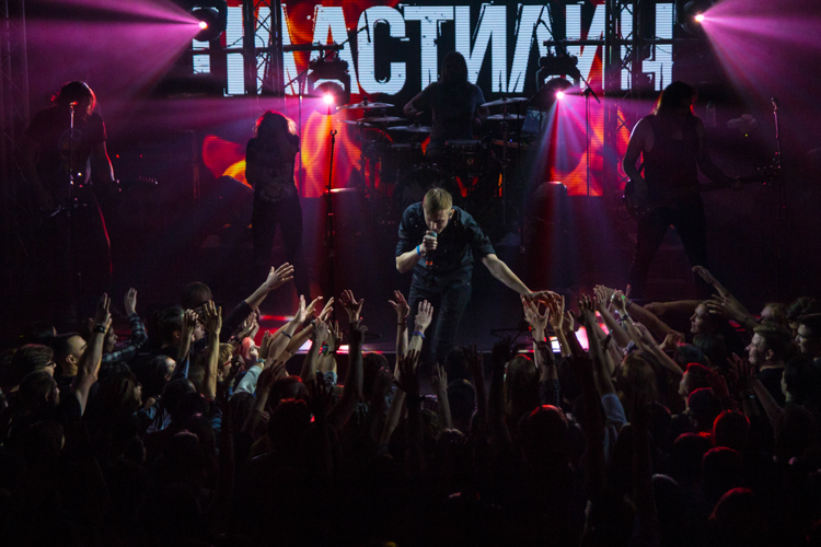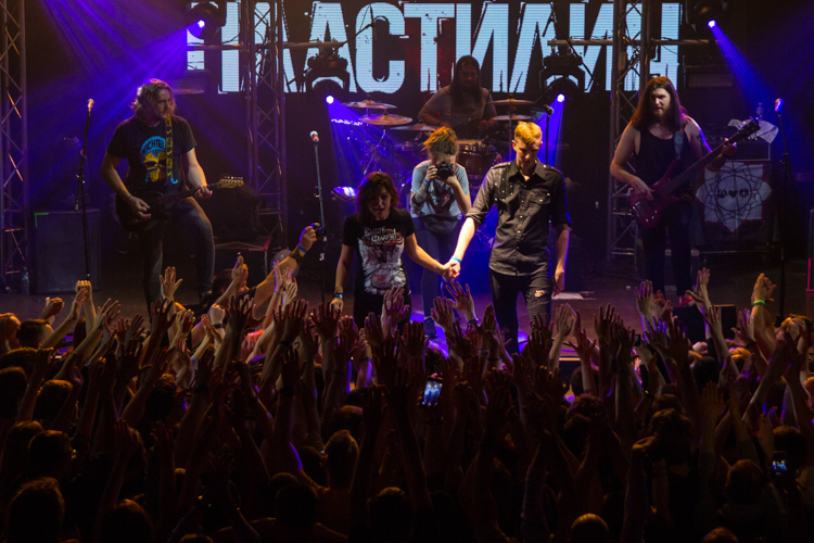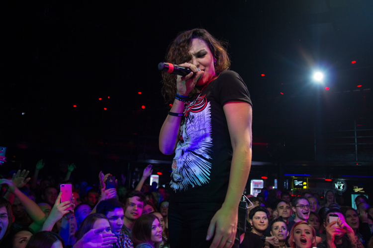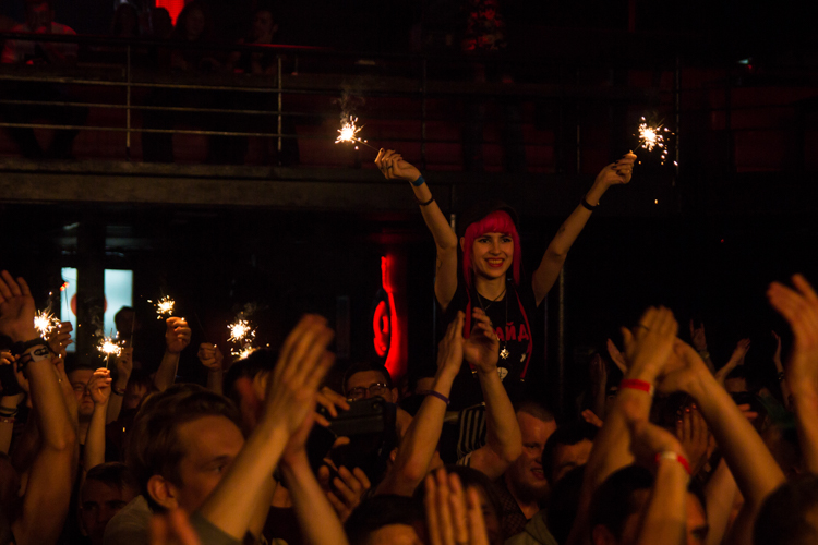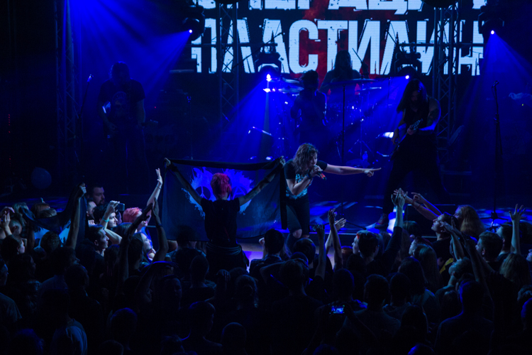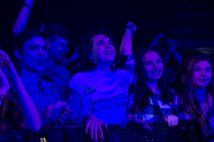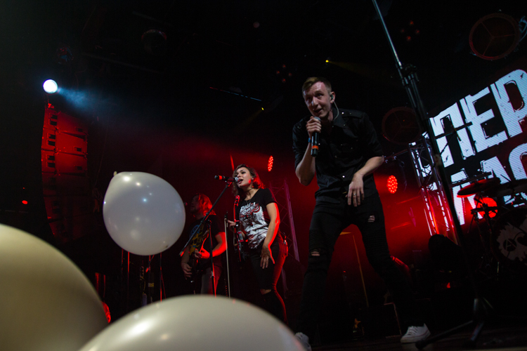 После одной из песен Анатолий представил нового басиста Михаила Бушуева: «Он очень волнуется, поддержите его» — сказал Толя. И публика несколько раз в течение концерта скандировала: «Миша, Миша». Михаил отжигал так же, как и остальные участники группы. Он даже принял участие в стейдждайвинге, прыгнув в толпу со сцены. Так делали и Анатолий, и Екатерина. А на песне «Наш прайд» музыканты втроем вместе с гитаристом Иваном Клюшином вышли в самую середину слэма, и Анатолий попросил сделать большой круг. «Ну что, устроим ад в прямом смысле этого слова?» — сказал он и понеслась.