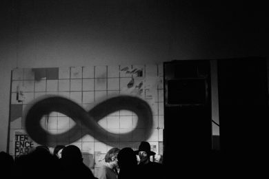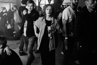 Привычный высокий уровень организации вечеринок подтвердился и в этот раз. Даже не смотря на небольшую входную группу, очередь из людей достаточно быстро нейтрализовалась. Уже внутри гостей встречал символичный «коридор памяти» — выставка фотографий Ивана Чернова, сделанных на вечеринках Roots United c 2009 года.