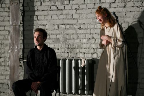 За весомую долю чувствительности отвечает, собственно, сам доктор (Кирилл Варакса). Сперва он — Бомгард, в первые минуты спектакля хладнокровно оперирующий себя сам, не позабыв, конечно же, предварительно вколоть себе обезболивающего, вероятно, морфия. После — то истерично восторженный, то безразличный Поляков, хроника губительной зависимости которого и является основой повествования. И если доктор Бомгард еще несет в себе признаки нарочитой книжности и внешней принадлежности к булгаковской эпохе, хоть и в его кармане в какой то момент звонит условный мобильный телефон, то после превращения его в Полякова, границы полностью размываются. Размываются они и в театральном смысле — буквально с первых минут актеры время от времени обращаются напрямую к залу, намеренно не отстраняясь при этом от своих персонажей. В купе с тем, что явные признаки современности выдают в них и актеров, которые играют здесь и сейчас на сцене, вырисовывается любопытная оптика, создающая нужный эффект широкого объема и наполненности временем как таковым.