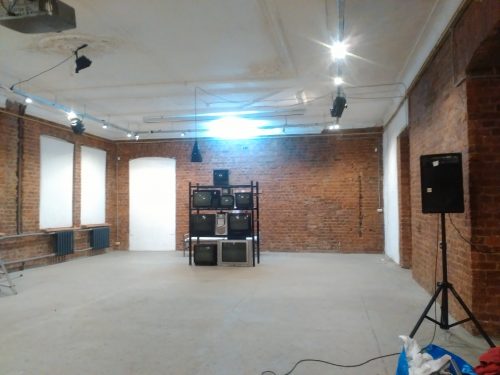 На сцене кровать и телевизоры. Холодильника не видно. По телевизору рассказывают обычное: выработка чугуна повысилась, удои отличные, завтра будет ещё лучше. Александр Машанов в записи читает «1984». «Власть состоит в том, чтобы причинять боль и унижать. В том, чтобы разорвать сознание людей на куски и составить снова в таком виде, в каком вам угодно».