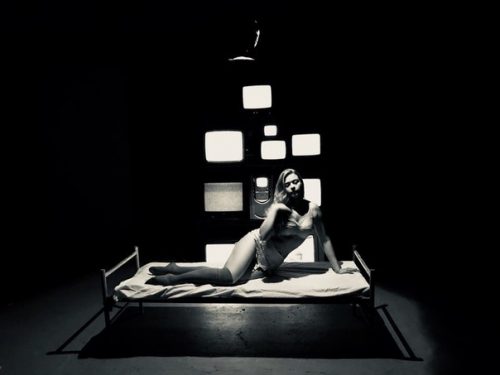 В спектакле «Наша новая счастливая жизнь» много чувственности. Девушка бьётся в сладостных конвульсиях под звуки гимна и маршей. Танцует стриптиз во сне.