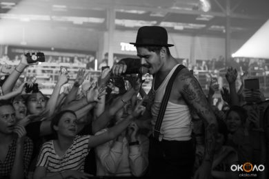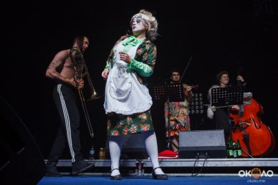 Эпиграфом к каждой песне были незамысловатые юмористические стихи жены Юры Анны Музыченко. Например, такие: «Сена в душу набросал, потом поджог и убежал». Или такие: «Зашторю шторы, достану штопор и буду в лифчике по дому ходить». На что, конечно, с негодованием отвечал Юра, совершенно не понимая, на что жалуется его любимая. Между супругами на сцене постоянно велся диалог, который, конечно, раззадоривал публику. Также «Шляпники» представили и новый трек под названием «FYFD» или «Forever Young, Forever Drunk». Они записали его совместно с «новым братом Феми».