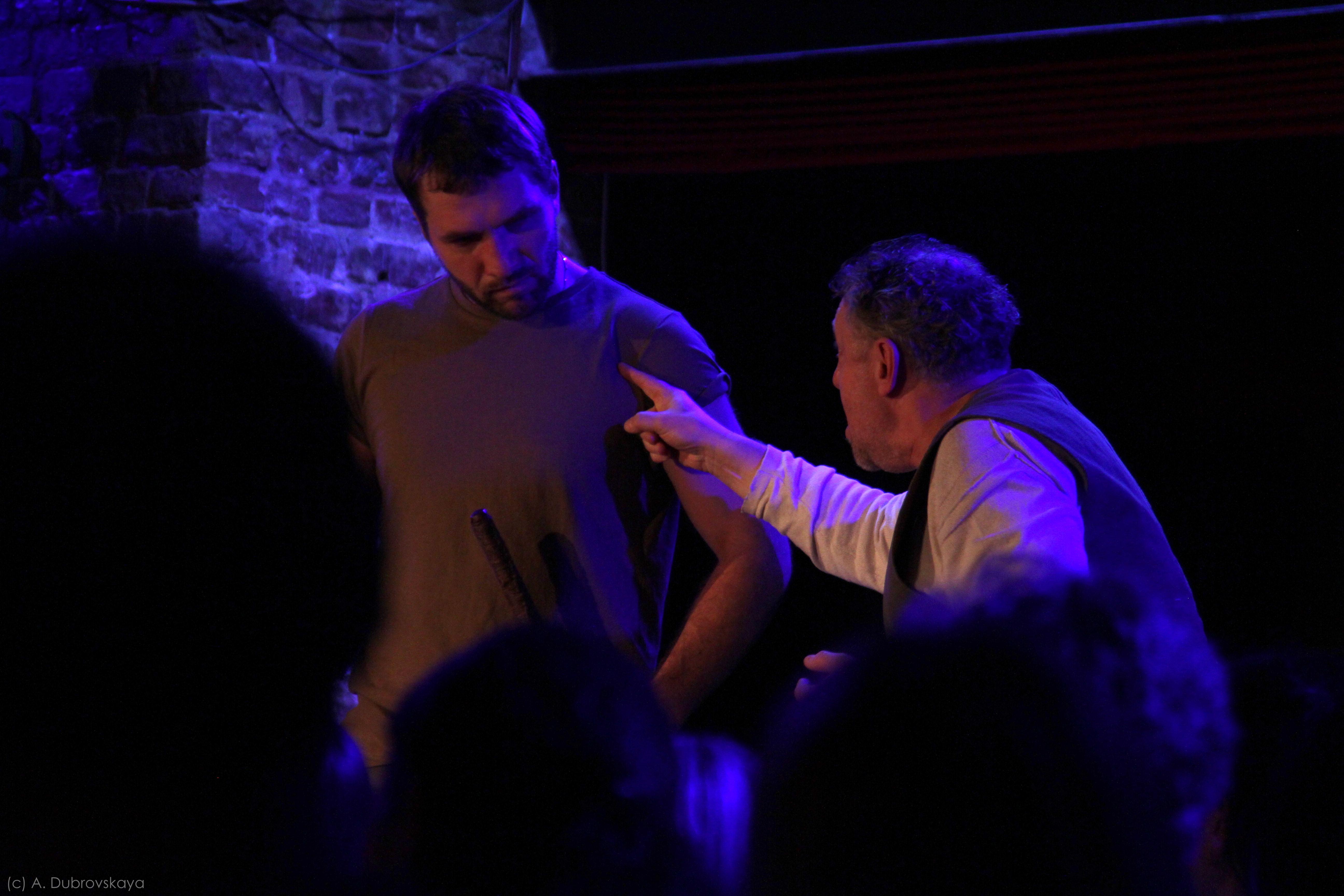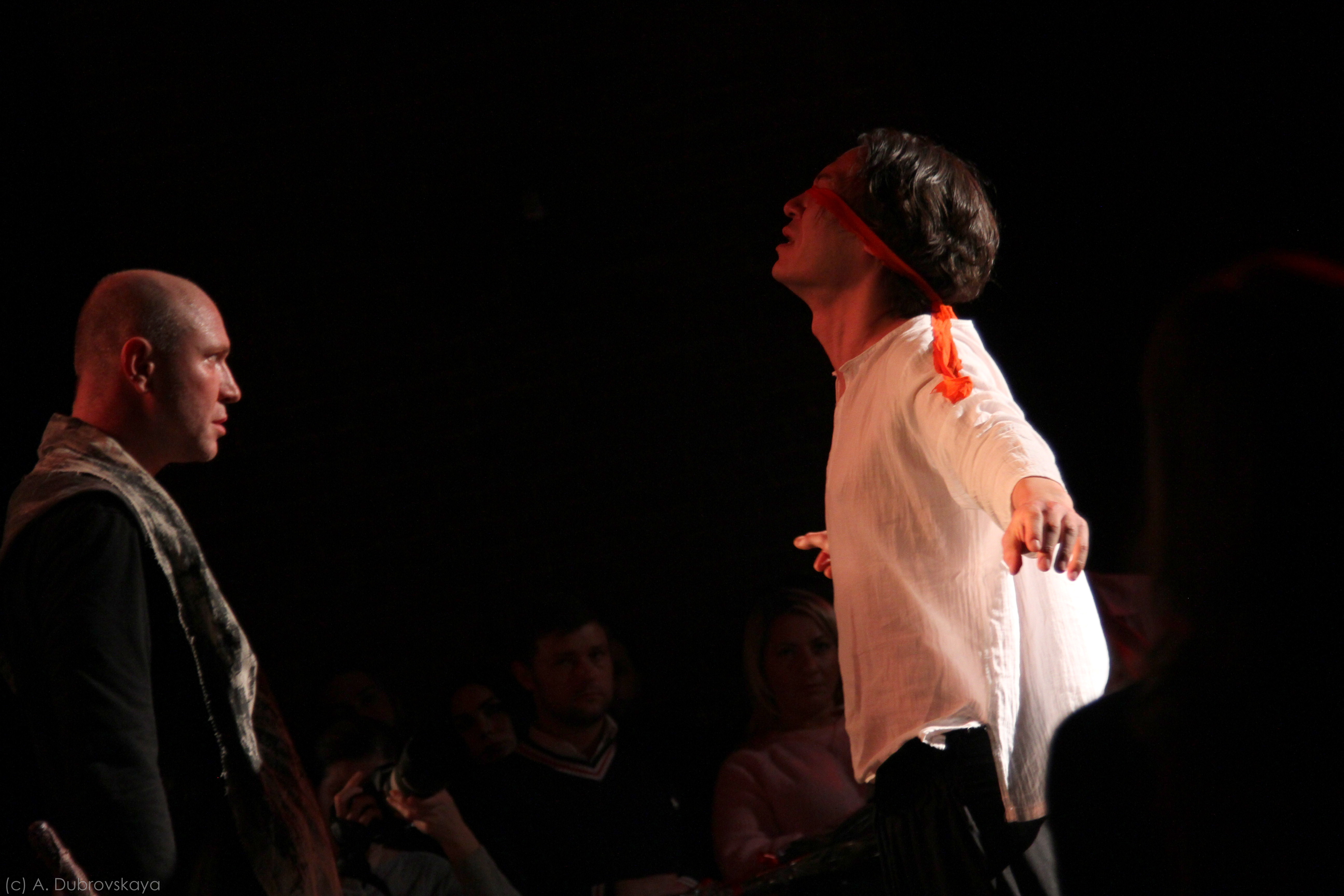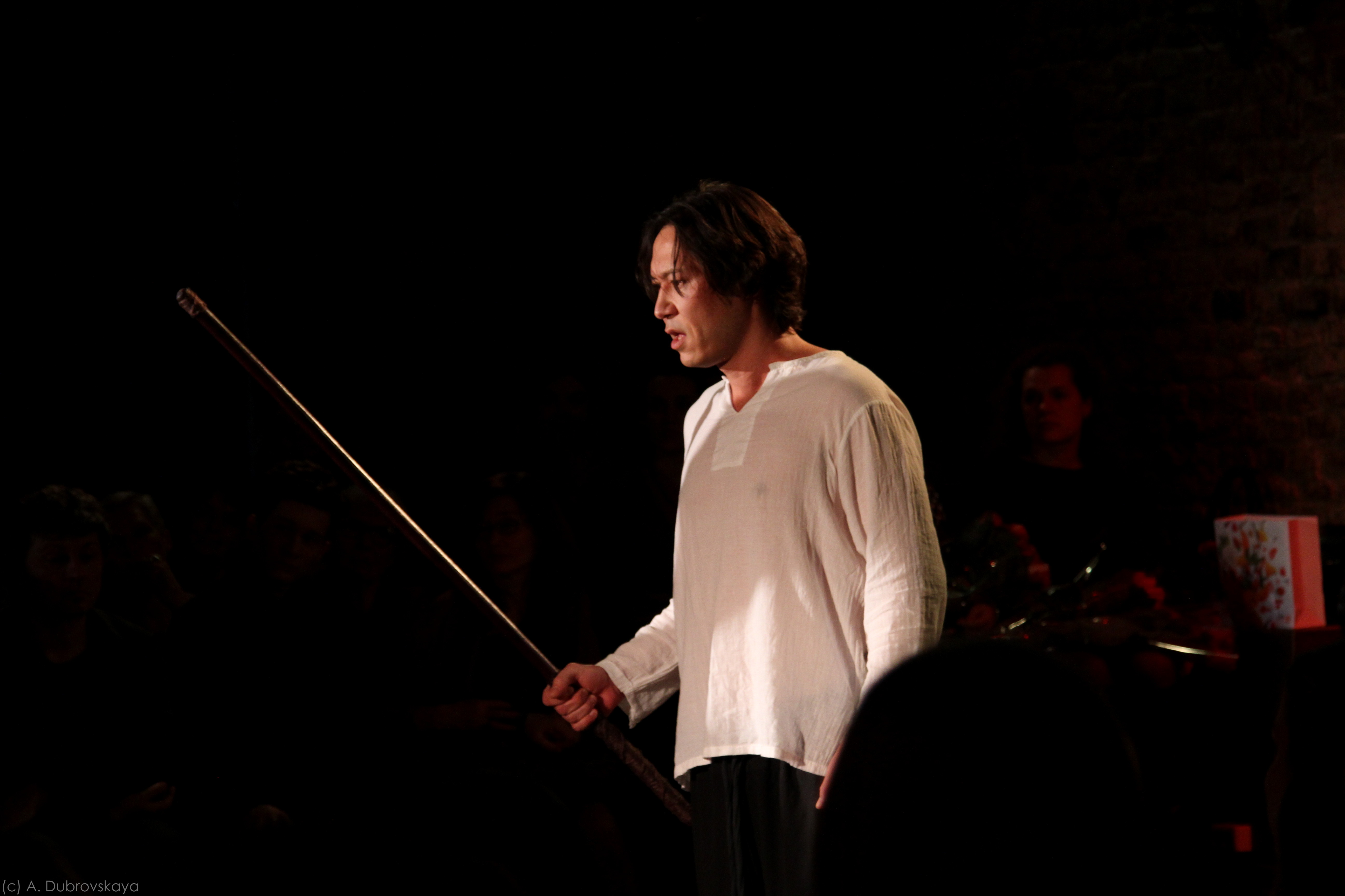 Притчевый сюжет не предполагает больших пространств и бурлескной яркости. Несказанно романтичная обстановка тесного кирпичного подвала старинного московского особняка подходит гораздо больше. Если дополнить интерьер композицией из свечей и гармонично распределить свет, то атмосфера становится не только камерной, но и вполне располагающей к восприятию животрепещущих философских истин.