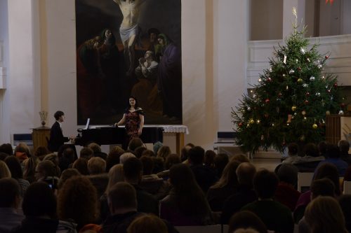 Для создания праздничной атмосферы на сцене перед алтарем, украшенным большой картиной кисти Карла Брюллова, изображающей распятие, установили пушистую нарядную зеленую елку. Но самым главным инструментом создания рождественского настроения стала музыка.