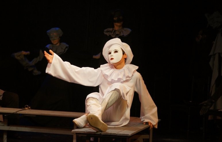 На сцене разворачивается совершенно непривычное даже для искушенного зрителя действие – весь спектакль разбит на 5 частей, каждая из которых воплощает отдельное театральное измерение. Таким образом, за непродолжительное время спектакля (всего час двадцать) зритель погружается в 5 совершенно разных миров: театр Диониса (Древняя Греция), театр Кабуки (Япония), театр Дель-Арте (Италия), театр Станиславского (Россия) и театр Бертольда Брехта (Германия).
