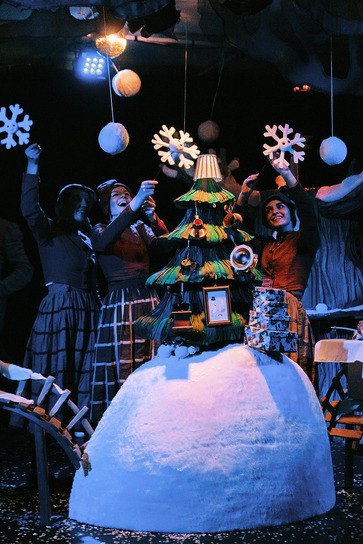 Белые сугробы, мостик, дерево-дом. Бенгальские огни и дымные ракеты, рассыпающие искры. Рождественское чудо творилось в театре «Карлссон Хаус». Мы попали на спектакль «Муми-тролль и Рождество» 7 января.