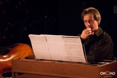 Произведения выдающихся французских композиторов конца 17-го века: Жака Дюфли, Морана Маре, Жан-Мари Лекрера и других прозвучали этим вечером не с главной сцены, а в камерной атмосфере одного из залов левого крыла Эрарты, где размещена постоянная экспозиция музея. К Владимиру Волкову присоединился ансамбль солистов The POCKET SYMPHONY: художественный руководитель Назар Кожухарь (скрипка, виола да гамба), Владислав Песин (скрипка), Владимир Гаврюшов, (виола да гамба), Александр Кискачи (флейта), Федор Строганов (орган, клавесин).