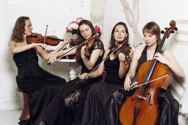 На сцене в этот прекрасный вечер – петербургский струнный ансамбль из четырёх прекрасных дам – “Пушкин-квартет”.