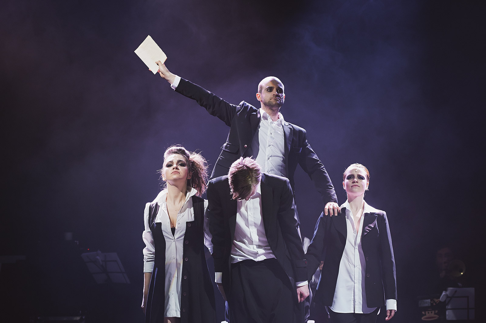 Создатели спектакля – режиссер Илья Мощицкий (Санкт-Петербург) и композитор Дмитрий Саратский (Киев) – за два часа буквально пересматривают заново весь XX век с его катастрофами, трагедиями, нравственными парадоксами, пределом и беспределом, на который только способен человек.