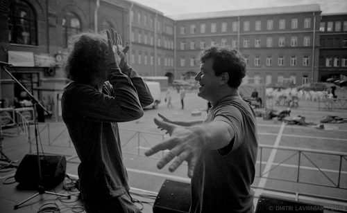 — Мы познакомились с Волковым на курехинском фестивале, на первом «SKIF» в Нью-Йорке. А потом случайно столкнулись где-то уже через полгода на… в Питере… на чем-то по поминкам Сергея Курехина. Это было летом, в августе, мы ездили на кладбище и просто в автобусе рядом сидели. Завязалось знакомство, дружба… Как-то само собой.
