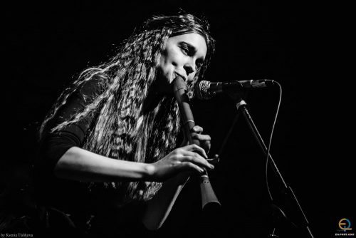 Колёсная лира подлерживается ритмом ударных, что бьют с оттяжкой, словно отдаваясь в самом сердце тревожно и завораживающе. Странная музыка заставляет окончательно забыть о настоящем месте и времени, стены растворяются в тёмной дышащей холодной ночи. И в самую тёмную ночь виднее звёзды, и тихий восторг разгорается оттого, что вот в руках музыкантов невидимо оживает старинная история. Головокружительная глубина времени, красота голоса, притягательные страшные легенды, песни создают чувство ритуального кружения.