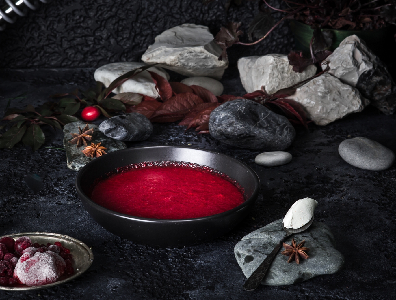 В меню: зеленые роллы («Оффшор» с запеченными овощами, «Нутовый шумер» с хумусом), вавилонская и перуанская каша на завтрак, новый формат для плотного обеда — высокобелковые момбы (еще один вариант веганского бургера) с нутом и всевозможными начинками, экстремально необычный ягодный суп воджапи, экзотические смузи и протеиновые коктейли. В десертном меню можно попробовать альтернативы привычным сладостям — черёмуховый бисквит, «Гималайский грильяж», фруктовые чипсы, миндальное и ореховое молоко и несколько вариантов мороженого, также без сахара и даже без молока («Пальмира», «Непальский гений», «Клубничный десант», «Детокс-реванш»).