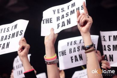 Именно поэтому концерт начался с песни из далекого начала нулевых «F-F-F-Falling», именно начиная с этой песни началась полная отдача не только от самой группы, но и фанатского сектора. Еще не прозвучало первое слово песни, как вверх взмыли десятки белых листов с надписью «Я фанат Расмус».