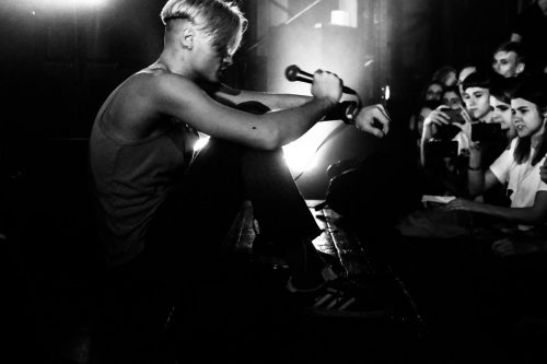 Апрельский концерт начался по классике жанра – очередью у входа и пустыми бутылками из-под алкоголя, выложенных в линию вдоль клуба. Тысяч обезумевших подростков, как на недавнем выступлении «Гречки» не было, поэтому все спокойно наслаждались погодой, допивая пиво и обмениваясь ожиданиями от вечера.