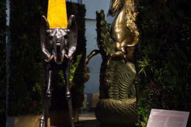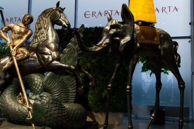 Грандиозная выставка скульптуры Сальвадора Дали, самого известного художника-сюрреалиста в мире, открылась в Музее Эрарта 25 мая. Самый большой зал музея превратился в подобие таинственного сада: посетители могут насладиться работами гениального художника среди деревьев под щебетание птиц.