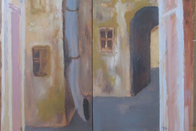Стрельниковой, как скульптору и живописцу, интересны возможности совместить пластические и живописные поиски в одном предмете. Двусторонние живописные работы, включенные в экспозицию, оживлены игровыми элементами. Дверцы настоящего шкафа «Гардероб и его пользователи» художник превратила в арт-объект с секретом: скрытая на первый взгляд, потайная сторона необычного триптиха позволяет проникнуть в интимный мир хозяев дома, предстающих перед зрителями в дезабилье.