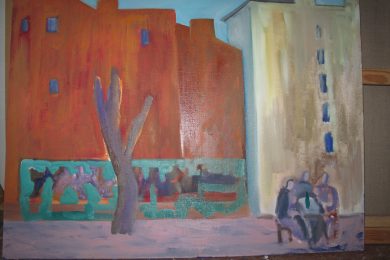Живописные произведения Стрельниковой, которые также экспонируются на выставке, раскрывают еще одну грань таланта художника. Портреты, пейзажи и многофигурные жанровые композиции стилистически перекликаются с пластическими образами, дополняя спектр творческого поиска тем. Персонажи жанровых картин ведут обычную повседневную жизнь: гуляют по улицам и набережным любимого автором города, отдыхают в садах, а порой сообща переживают трагические события («Красный патруль. 1938 год», «После обыска»). Очевидно, такие произведения Стрельниковой вдохновлены рассказами родителей и семейными воспоминаниями, которые произвели на нее сильное впечатление. В цветовом решении пейзажей проявляется вся любовь автора к Петербургу: архитектурные виды родного города Стрельникова превращает в своеобразную лучезарную мозаику.